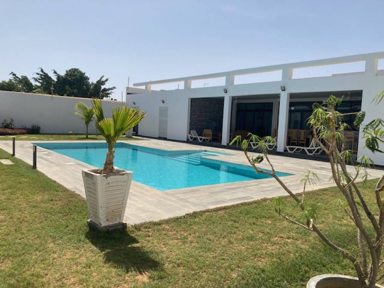 Magnifique villa en résidence avec piscine privée, terrasse aménagée, 4 chambres , 2 salles de bain, cuisine équipée , salon, wifi, canal , IPTV, parking, groupe électrogène dans la résidence et piscine commune