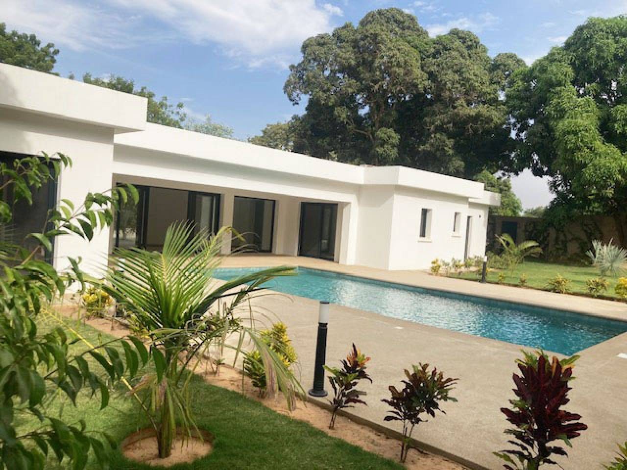 Elle dispose d'un séjour de 70m, de 4 chambres climatisées , 4 salles d'eau, 1 wc visiteur , une cuisine équipée et ouverte , un local gardien, un garage fermé, une terrasse, une piscine de 9x 4, 5 m, un local technique  ,une réserve d'eau de 20m3, un puit et parking voitures